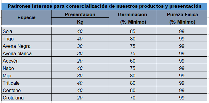 Somos productores y comerciantes de semillas con Registro Nacional de Productores de Semillas N° 01/PS; Registro Nacional de Comerciantes de Semillas N° 63/CS y Registro Nacional de Laboratorio de Semillas RNLS N° 02.